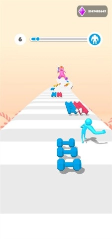在你奔跑的过程中,一定要优先收集蓝色的杠铃,避免对红色的杠铃产生误会。