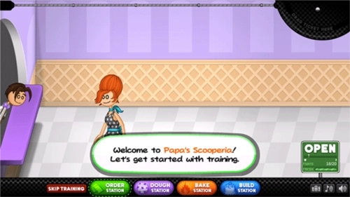3、接下来就正式进入饼干制作环节啦,点击“doughstation”,这位顾客想要的是传统饼干,所以要选择装有传统面团的垃圾桶。