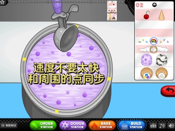 5、你得用手来舀冰淇淋!缓缓拖动铲子,尽量让它的速度和篮筐周边那些点的速度保持一致。