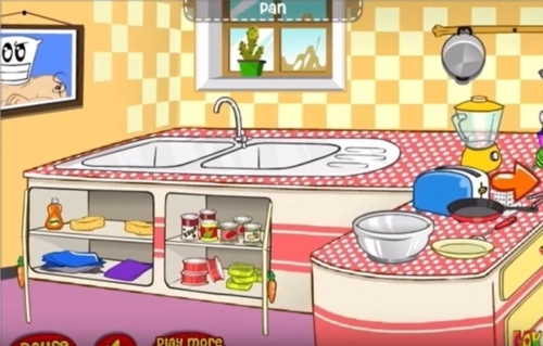 另外,打开水池下方的橱柜,取上层的任意一个罐头(数量很多,可随意挑选),用搅拌机旁边那个像剪刀的物品打开罐子即可。