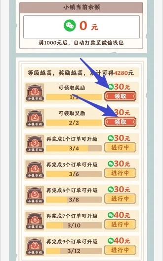 筑梦长安生活里有两个累计到1000就能提现的任务,其中一个和小镇等级有关——每次升级都会给几十块红包奖励,但得攒够1000才能提现。我没特意算过要升到多少级才能凑够这1000,不过想来要花的时间应该不少。