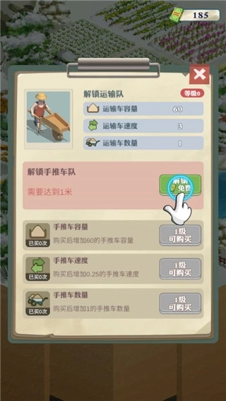 2、解锁运输队,首次解锁运输队是免费的,之后解锁则需要消耗钞票