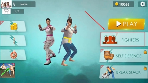 1、进入游戏后,第一步是点击【FIGHTERS】按钮来选择要上场的角色。
