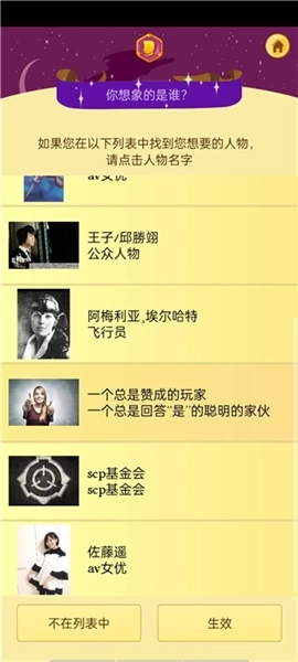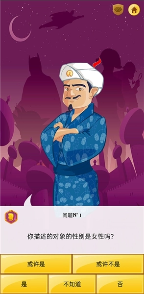3、总共有7个问题,等你把这些问题都回答完,神灯就会猜出你心里想的那个人物。