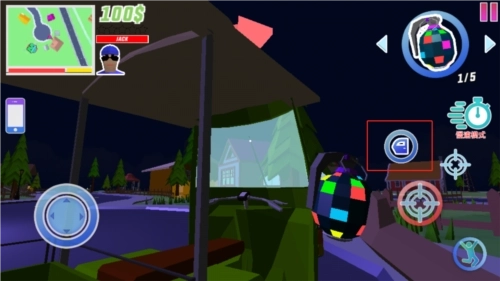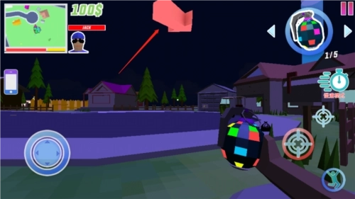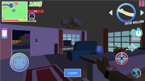 7、左侧的按钮用于控制角色移动,右侧区域中,靠左的按钮是角色攻击键,右上方的按钮负责瞄准,右下方的按钮是跳跃键,点击右上角的对应位置能够切换工具。