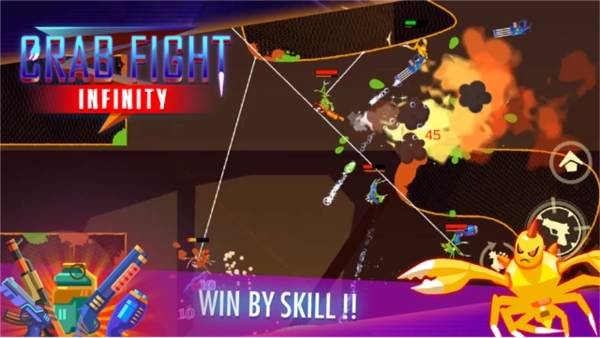 螃蟹大乱斗手机版设有丰富的战斗模式可供挑选,不仅打造了清晰的画面场景,还设计了能激发趣味的战斗玩法。玩家将化身巨型螃蟹在城市中征战,借助各类特色武器装备发起猛烈攻击。通过持续升级螃蟹,在多样场景里挑战对手,感受流畅的动作表现与新颖有趣的关卡设定。不管是单人对决还是团队作战,螃蟹大乱斗都能为你呈现惊险刺激的战斗画面,带来充满激情的游戏体验。