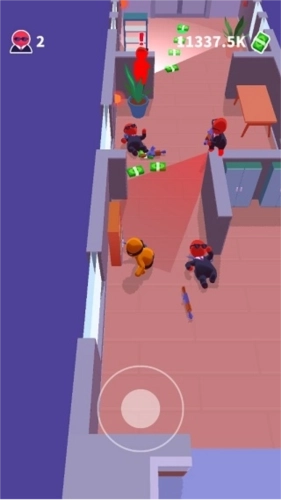 1、游戏操作十分简单,在《隐形大师》里,你仅需操控角色移动即可,当角色靠近敌人时便会自动发起攻击;