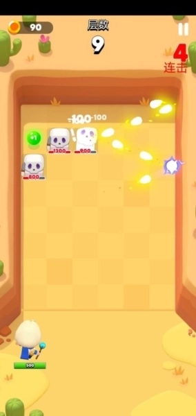 4、发射出的子弹在碰到怪物或墙壁后会发生反弹,且每次射击结束后怪物都会向前移动一格。