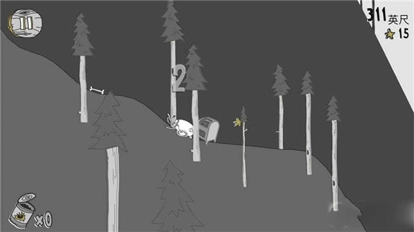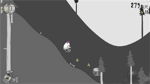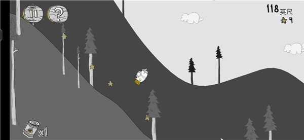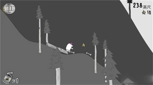 3、骑上那辆破旧的小车,只要撞上树桩就能顺势滚下山崖去收集星星啦。