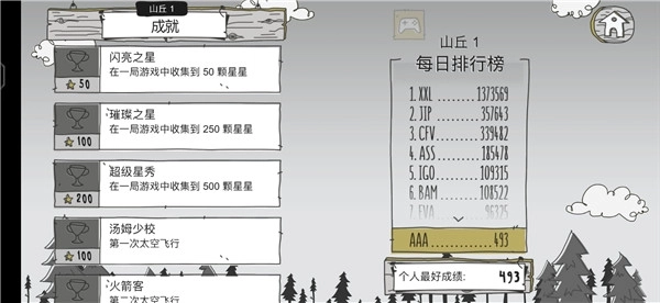 4、在主页中可以查看你完成的成就和每日的排行榜。