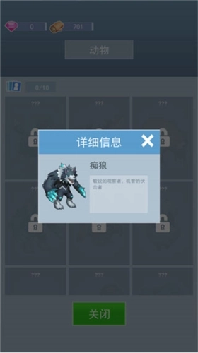 5、界面底部的“礼包”功能支持通过签到获取福利,点击“动物”选项,则能查看尚未解锁的各类动物的详细信息。