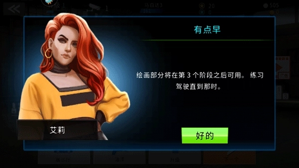 4、在驾驶练习阶段获胜后,首先需要进行选车操作,你得在展示厅用硬币购买属于自己的第一辆车,并将其存入车库。