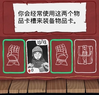 你能够在背包卡槽中放入一张额外的卡牌。你面前的空卡槽总共能放置4张卡牌。每个回合对手都会发放新的卡牌,把卡槽补满。物品卡槽只有在装备了对应的物品后才能使用,你可以尝试把武器卡牌拖拽并放到左手的物品卡槽里,其他物品也按这样的方式操作。