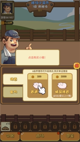 2、还可以在商城里购买各类饲料来喂养,等猪长大后自然也能拿去售卖。