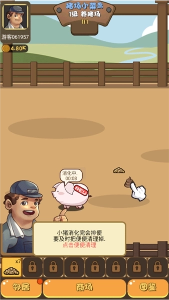 4、小猪消化后会排便,需要及时清理掉,点击便便就能完成清理。