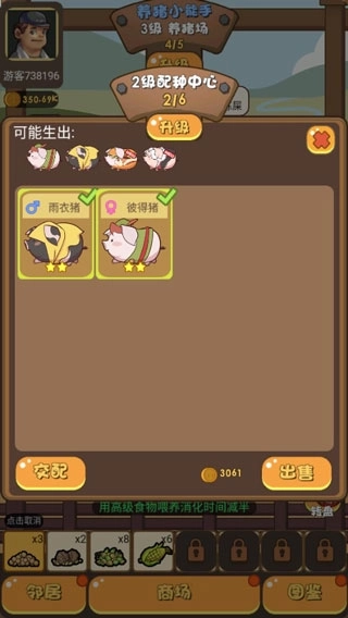 在这期间,提升猪圈的等级可以让猪仔的养殖数量有所增加,升级配种中心则能够提高配种的速率和容量,另外,各类配种植的图鉴也是大家收集的核心内容。