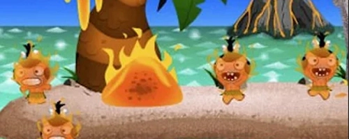2.从岛屿的前端往辽阔的大海中投掷土着人,瞄准屏幕中间的冰块,就能召唤出冰怪兽。