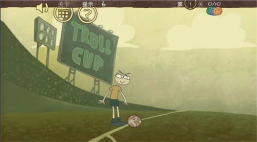 第一关:点击左上角的牌子,球员会从后面上前将小贱踹飞,即可过关。