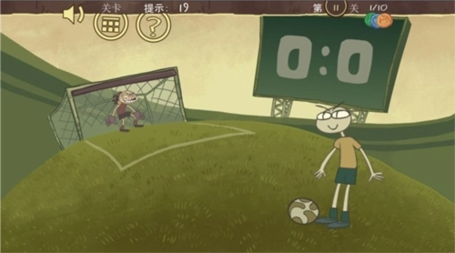 第十一关:这一关操作很简单,只要把守门员头顶上方的球门拉一下,接着点击人物让他踢球就可以了。