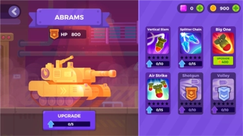 游戏里有多种坦克、道具和武器玩法,这些武器与道具还能升级。选择武器能明确玩家的目标,玩家需要找到正确的射击角度,向敌人的战争机器释放钢铁之力,快速做出正确射击,不然就很容易失败。