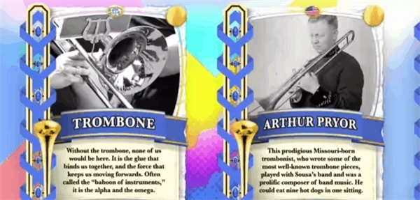 TromboneChamp收录了二十多首曲目,涵盖国歌、进行曲、古典乐、电子乐、民间经典等多种类型,同时还有客座艺术家带来的精彩曲目。每首曲子都配有独特的动画背景,会随着音乐节奏同步变化!