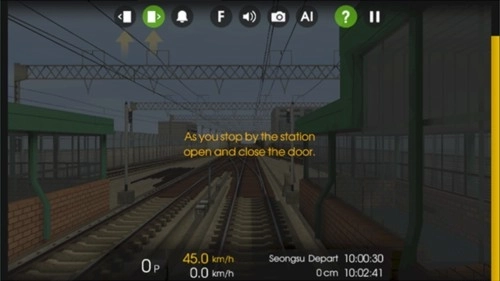 2、列车驶入存车线时,会自动限速,同时能听到车轮撞击道岔的声响;行驶至岛式站台与侧式站台时,会开启不同方向的车门;列车的报站语音和广播内容都十分逼真。