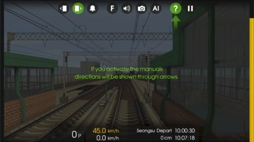 4、当火车停下后,你可以借助【F】图标调整火车的行驶方向,也能点击【相机】图标切换驾驶视角,还可以通过点击【AI】来启用自动驱动系统实现自动驾驶。