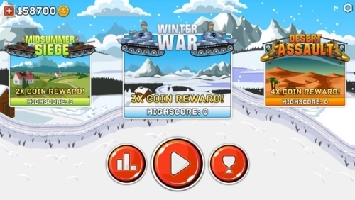游戏为玩家准备了闯关、PK、挑战三种战斗模式。闯关模式作为最基础的玩法,玩家通过完成关卡任务获取金钱与资源,以此扩建坦克基地、打造更强力的坦克。挑战模式则聚焦于Boss战,不过Boss难度颇高,实力不足很难将其击败。至于玩家PK,这原本是我比较期待的部分,但遗憾的是,游戏虽采用系统匹配机制,实际对战却只是和“僵尸敌人”对抗,无法实现玩家间的实时在线PK,这点确实有些可惜。