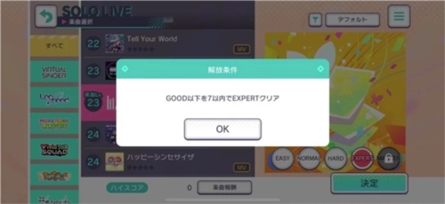 这5个难度模式中,前4个均可直接选择,而初始时第5个噩梦模式处于锁定状态。玩家需完成指定任务方可开启该模式,具体要求为在专家模式下游玩该歌曲时,good判定次数少于7次。只有满足这一条件,噩梦难度模式才会解锁供玩家挑战,否则将持续保持锁定状态。