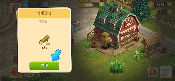 5、农场里的不少设施得先修理好才能使用,像谷仓这类,修理之前得备齐足够的材料才行哦
