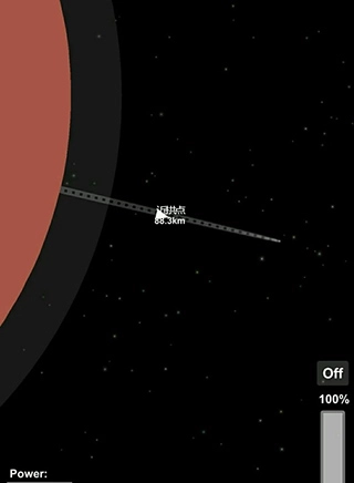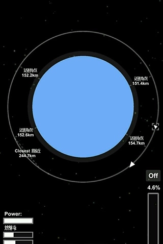 7.接下来我们要关注月球,查看规划的轨道是否能与月球完成对接。需要注意的是,要及时降低燃料输出功率,否则规划的轨道会越过月球,这样就没办法抵达月球了。