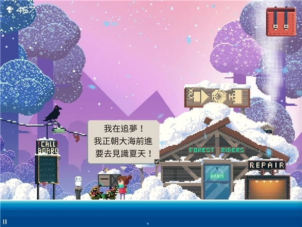 8、整体来看,画面带来的感受相当不错,视觉体验效果良好,场景的变换有效避免了长期审美疲劳的问题,增添了不少新鲜感。这是一款十分可爱的像素游戏。