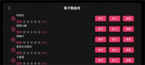 3、专为新手练习打造的音乐示例,一键就能试听学习,绝对是架子鼓新手的贴心福利。