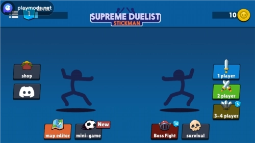 游戏主要包含四种模式,分别对应1至4名玩家参与;您既可以同时操控两个火柴人,也能选择单人对抗CPU。CPU难度设有简单、正常和困难(困难模式近期已做削弱)三种类型。