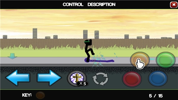 以最基础的火柴人为例,它赤手空拳,不携带任何武器,我来给大家讲解几个连招技巧。首先,我们先熟悉一下几个基本的按键操作。