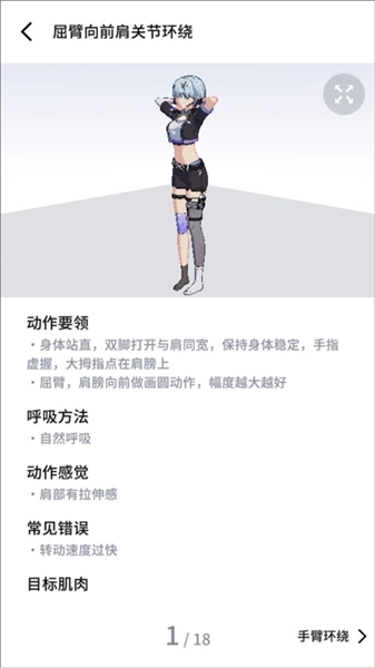 7、健身教程同样规范,开启训练时,视角支持360度无死角旋转,能从不同角度观看动作,并且配有详细的动作要领可供查看。