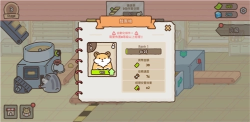 4、招募更多仓鼠加入工作团队,让它们在这里为你效力,并且仓鼠的造型十分可爱。