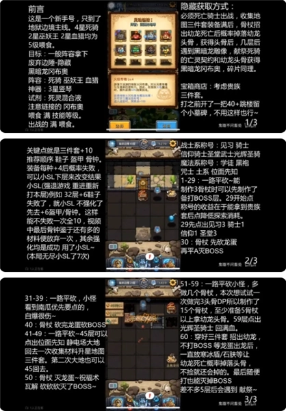 打法思路如下:首先选择冒险系,朝着异界路线加点。在解锁异界之前,希望进洞时不要碰到巨人尸体——毕竟巨人能翻出强化成功率100%的灵魂。要是运气不好提前遇到了,要么选择大SL(存档读档),要么后面多走一次大地回退。接着换上亡灵契约,一路无脑爬到59层,有白棋保底的话不容易阵亡。爬楼时同步升级铠甲,铠甲升满后再升鞋子;到59层时用探索点加魔法系的位面技能,然后通过大地回退再刷一轮,回去时还能顺便收集罗盘金币。如果有巨人灵魂,通常第二次到59层时三个装备就都满了(记得凑够30个头骨和胸骨再用灵魂);要是没有巨人灵魂或者装备没满,就再回退一次。60层时穿上装备召唤幼龙,之后脱掉装备去“碰瓷”,直到刷出头骨。65层拿隐藏奖励。至于boss不用太担心,嗑个兴奋剂直接硬刚就行。