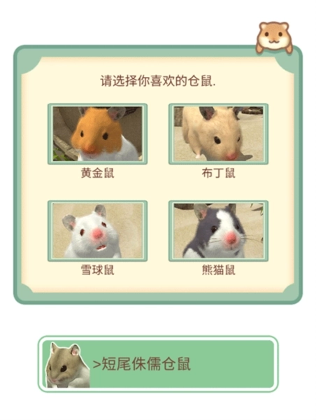 1、进入游戏后,玩家可以选择一只自己喜欢的仓鼠