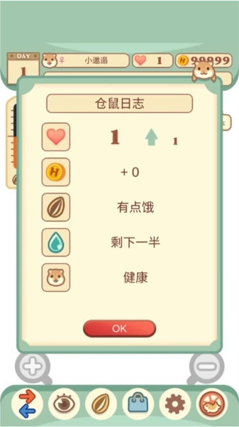 2、选好仓鼠后,作为主人,你要时刻留意小仓鼠的状态