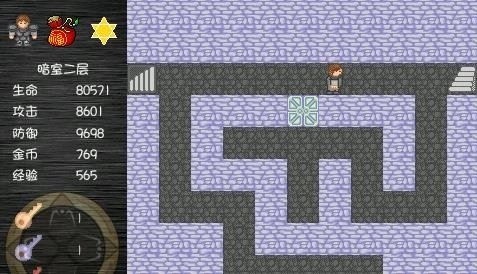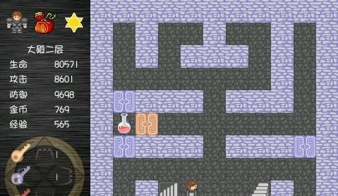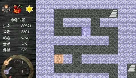 7、冰二:一路杀上冰三,注意暗墙。这里值得一提的是,紫骷髅先不杀,先杀史莱姆,拿宝石,防御到652的时候,再杀紫骷髅