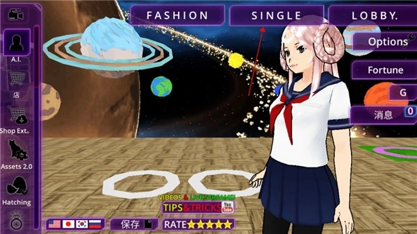 1、启动女子校园模拟器中文版,点击左下方的【国旗】图标,