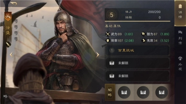 属性加点方案:徐盛主加统率,太史慈主加武力,大乔主加智力