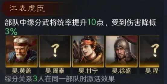 提高部队缘分武将的统率值,并降低受到伤害。