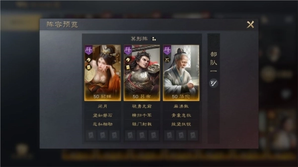 在《三国谋定天下》里,吕布拥有出众的物理输出能力,其技能【原门设计】可被巧妙运用。若搭配辅助华佗,能助力吕布清除身上的减益状态。貂蝉与吕布在小说中是夫妻关系,这一设定在游戏里也得到了还原——两人的属性能够彼此加成,构建出攻防兼备的强力组合。要是没有华佗,蔡文姬也可作为替代选择。