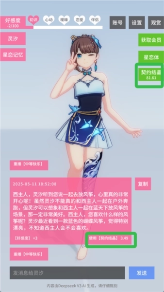 4、每次与星恋体都会消耗契约结晶。