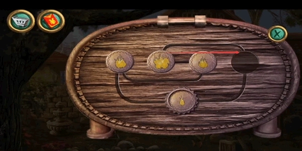 4、把镜片安装到望远镜上,通过望远镜观察并记住星球的位置。接着点击望远镜左侧的小机关,将获取的两个星球模型放入其中,并摆放成图中展示的样子。这里的原理说明一下:只要是这个位置,让红绿两个圆形空缺恰好对准模型的支架下方即可。对于这张图,我们只需调节红色机关就能完成操作。