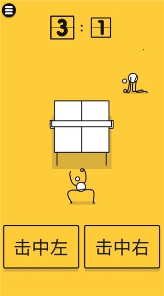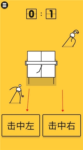 2、游戏开始后,我们观察对手的击球情况进行判断,若对手击球偏向左边就点击“击中左”,若偏向右边则点击“击中右”
