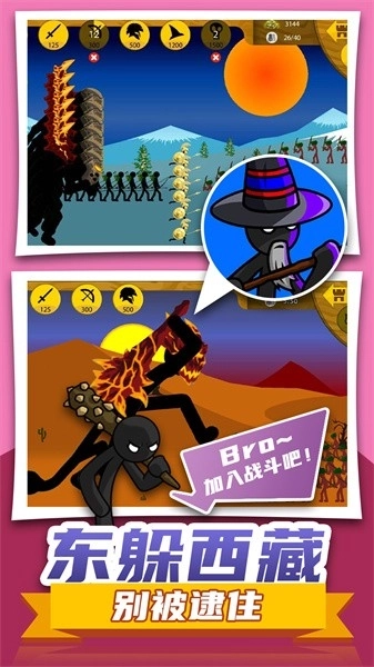 2、上瘾体验战刺激:极具趣味性,玩起来容易上瘾,通过不断测试和体验,玩家能够身临其境感受刺激的战斗,充分体验指挥火柴人作战的乐趣。