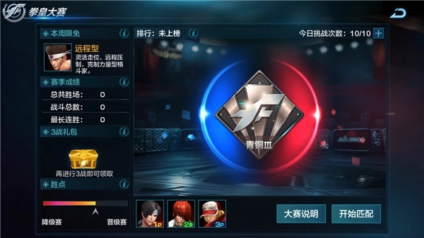 1、加入公平竞技玩法【拳皇大赛】每日开放,复刻拳皇格斗操作感受。
